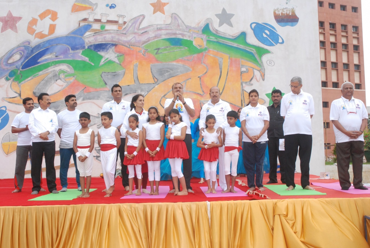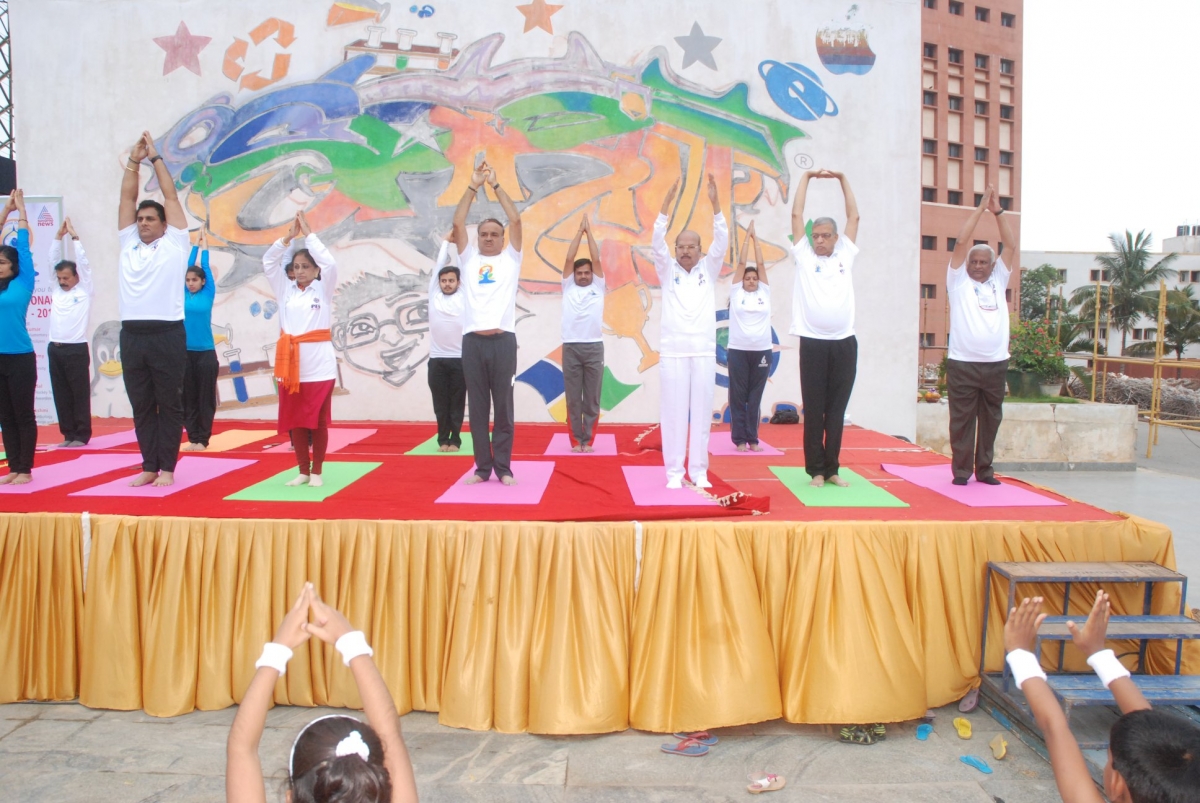 Addressing the audience Dr. M R Doreswamy said Yoga is always given prominence at PES starting from PU (Pre University) to PG (Post Graduation). It is a fundamental unit of PES. Hon’ble Minister has already stated the significance of Yoga. “Yoga is one of the significant contributions of India to Mankind and every Indian must be proud of it”. The art of practicing yoga helps in controlling an individual’s mind, body and soul. It brings together physical and mental disciplines to achieve a peaceful body and mind; it helps manage stress and anxiety and keeps you relaxing. Yoga is a secular and global phenomenon.