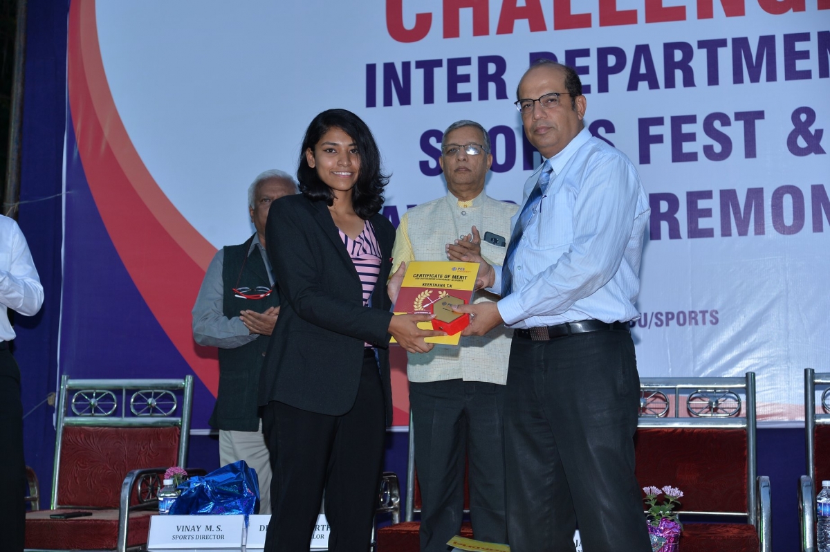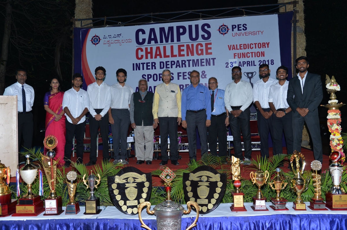 The department of physical education and sports organized inter department sports festival and winners were awarded in a ceremony held at PES Cricket Stadium on April 23. Pro-Chancellor, Prof D Jawahar released the third edition of the PES sports magazine on the occasion.