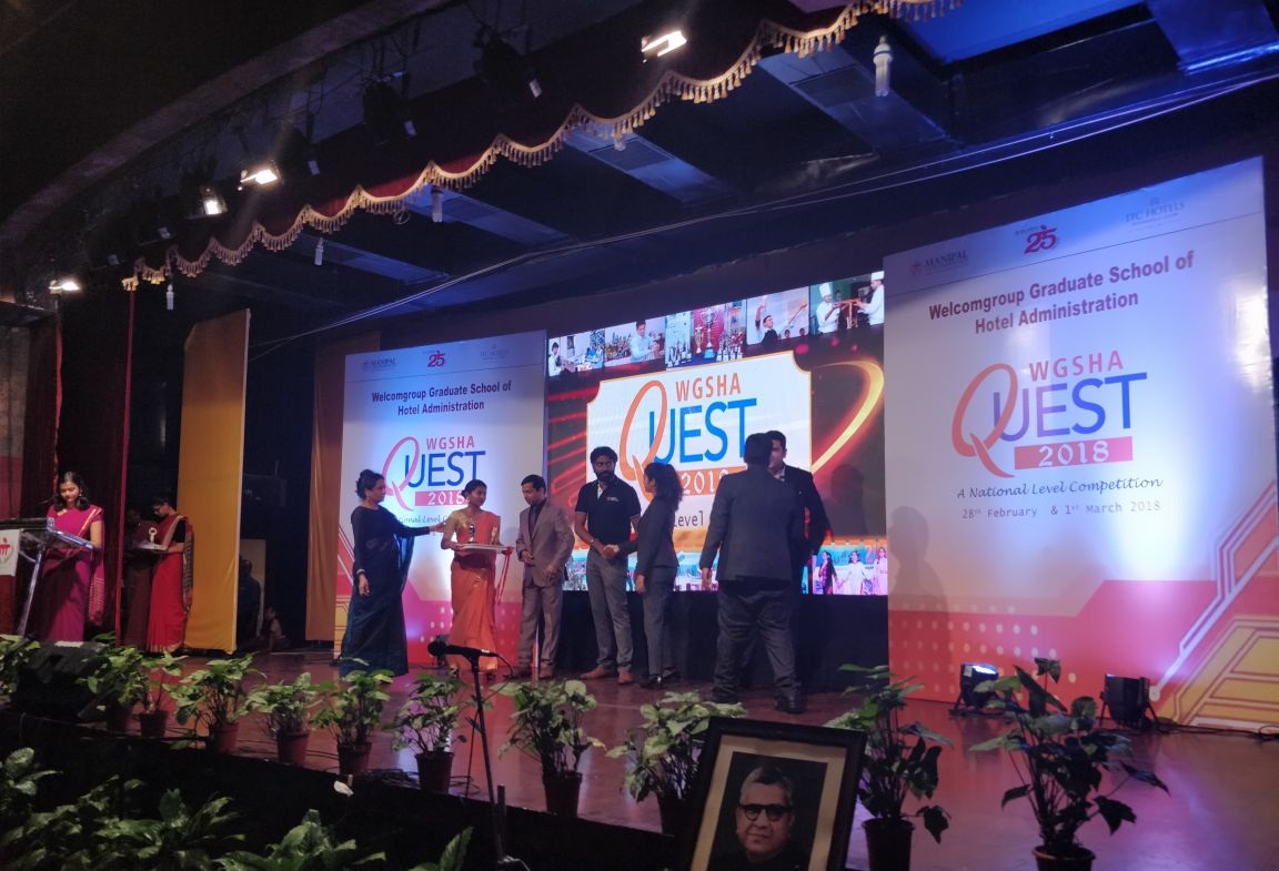Chandni and Ghagan Lokesh registered a notable win at Quest 2018 in the front office competition leaving behind teams from over twenty reputed hotel and hospitality management institutes. The two day national level hospitality competition tested ability in the areas of role play, team work, situation handling and managing crisis at workplace. The event organized by Welcomgroup Graduate School of Hotel Administration, Manipal is an ideal platform for hospitality students to enhance their skills and develop leadership acumen in areas related to culinary, F&B, front office and accommodation. Chandni and Ghagan Lokesh are students of BBA HEM program in PES University.