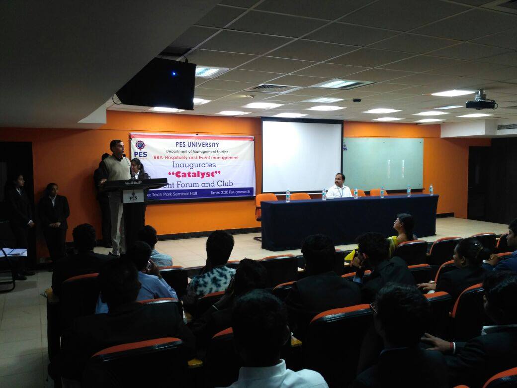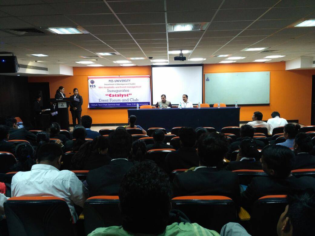 Catalyst, the event club and forum was inaugurated at an impressive ceremony. The logo was unveiled on the occasion and poster and video teaser were released. The students regaled the audience with a delightful dance performance. The inauguration program held on Jan 12, 2018 in Tech Park seminar hall was conceived and managed by students of BBA-HEM program.