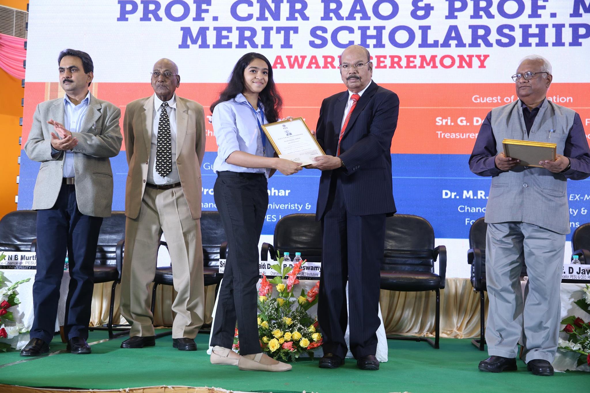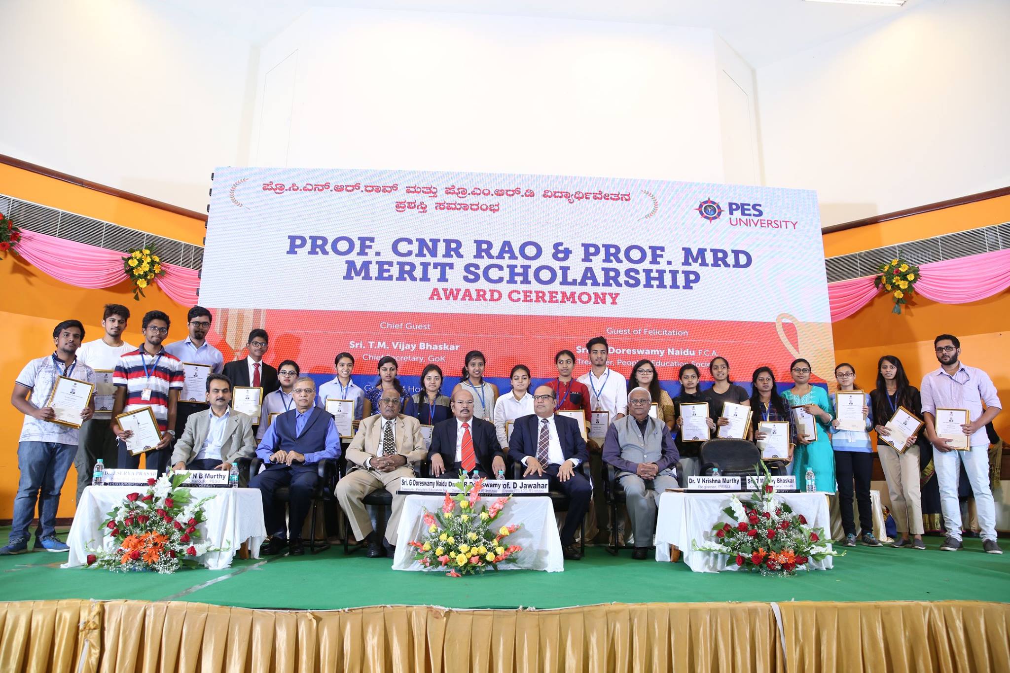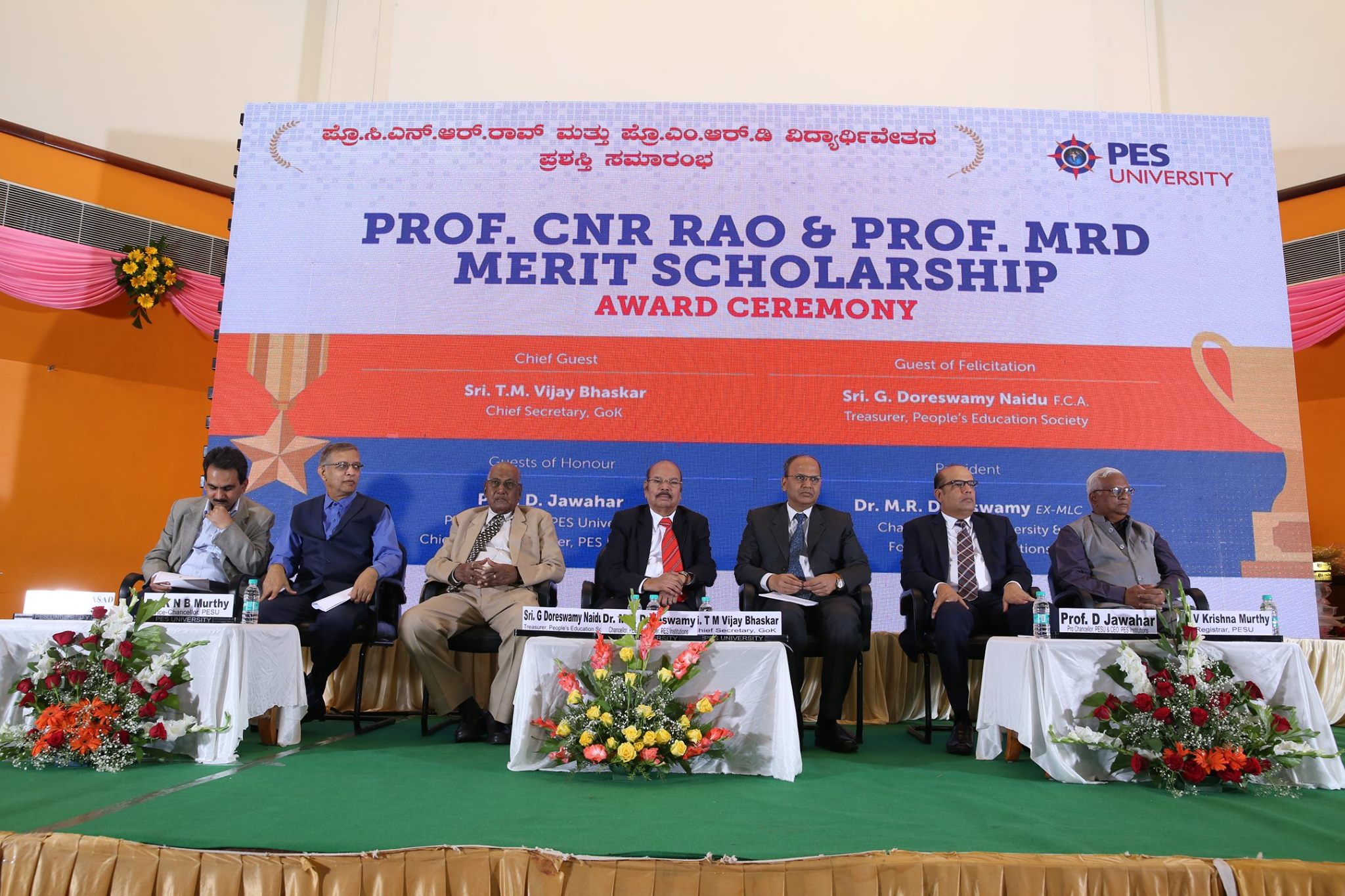 Professor CNR Rao and Professor MRD Merit scholarship award ceremony was organized at PES campus on March 2. The chief guest Sri T.M. Vijay Bhaskar, Chief Secretary, Government of Karnataka, distributed the scholarship award to toppers of 2015and 2016 batch students.
