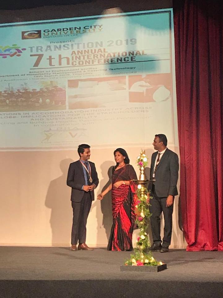 Ashish Parthasarathy, won two gold, three silver and a bronze medal in the Innovative Championship: Accommodation Whizz Wizard. He presented a research paper in the on AUGMENTED REALITY as AN INNOVATIVE TOOL TO ENHANCE GUEST EXPERIENCE DURING STAY IN A FIVE STAR HOTEL in the TRANSITION 2019 conference. The theme of the conference was INNOVATIONS IN ACCOMMODATION INDUSTRY ACROSS THE GLOBE- IMPLICATIONS FOR THE STAKEHOLDERS AND SUSTAINABILITY. Ashish is Assistant Professor with Department of Hospitality and Event Management. The event was organised by Garden City University on March 14, 2019.
