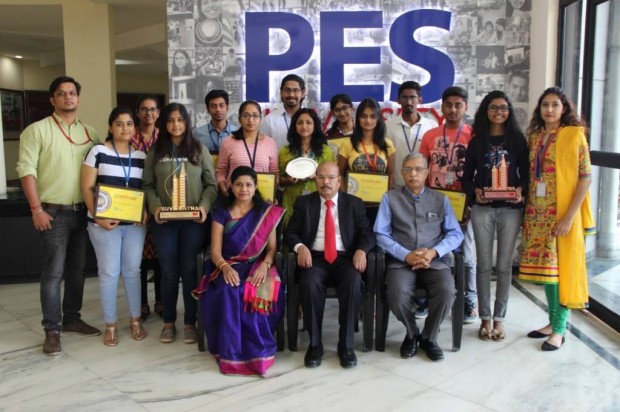 The students of PES University are proud winners of three awards in the YuvaratnaNXT, 2017 national competition. The awards are constituted to inspire budding architects to imaginatively present ideas from a range of versatile products manufactured by Birla White. Over 400 entries from around the world were submitted. The theme for this year was: Indian festivals and culture. The challenge was to design a wall surface of size six feet by four feet size in a novel way using Birla White cement and its value added products such as Levelplast, textura and GRC. Second and fourth semester architecture students won the first prize, third prize and the judges’ appreciation award. The assessment criteria included concept, composition, aesthetics, theme, originality of idea and finally the innovative usage of Birla White materials. The designs were highly appreciated for their unique and practically implementable solutions.