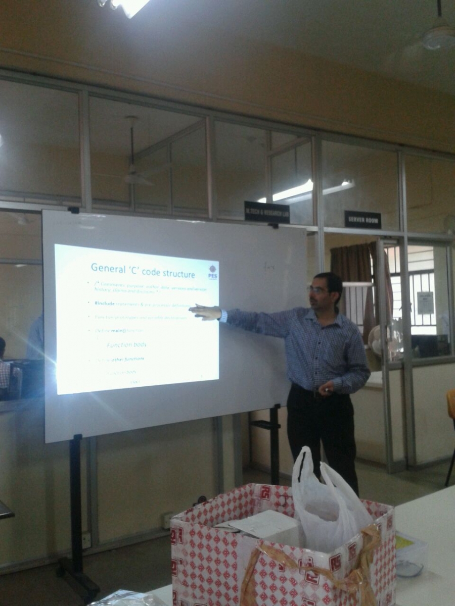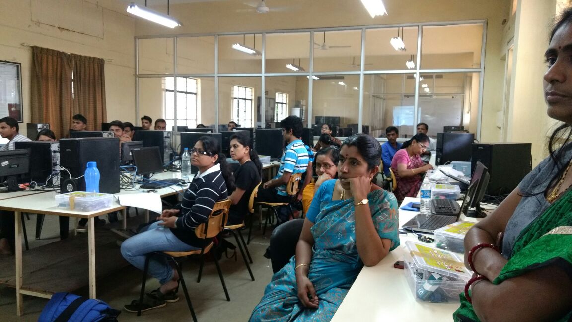 Arudino Projects: Students got an opportunity to build a moving robot with wheels and control its direction and speed using hardware and software. The 6 day workshop conducted by faculty members guided students in using a low cost and simpler methods to build devices that interact with their environment using sensors and actuators. Participants built devices using sensors for temperature and humidity, ultrasound, IR and motion.