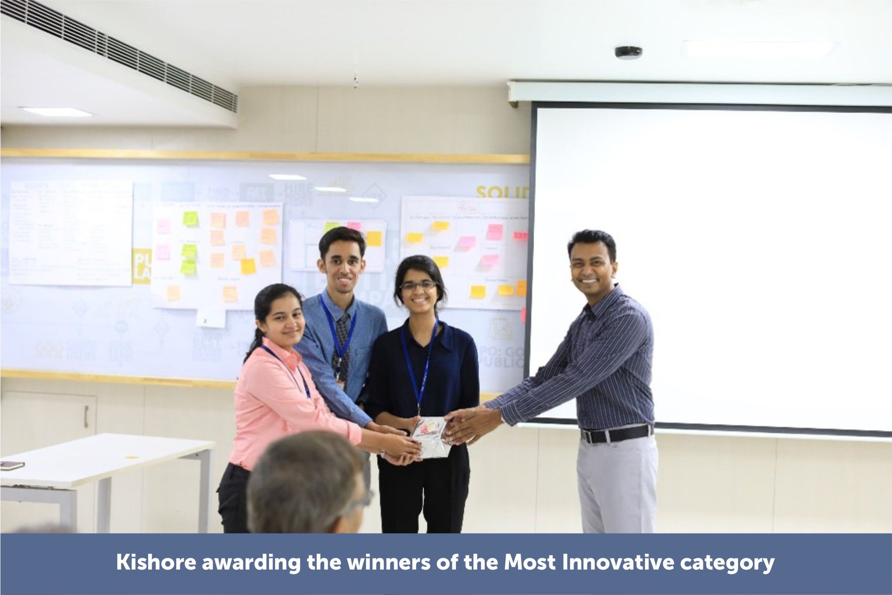 Most Innovative submission winners Nandagopal Vinayak, Maanvi Nunna and Malaika Vijay for their submission on Drowsiness Detection.