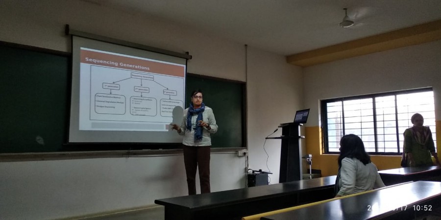 Whole genome sequencing (WGS) is important for study of life sciences, evolutionary biology and clinical progresses. The workshop started with the quality control of a sample sequence followed by trimming of adapters. Next, the sample was aligned with the reference genome and identifiers were added. Through the use of tools for SNP and indel callers, a Variant Calling Format file was generated, whose data was analysed and annotated by matching the SNPs against the NCBI database. The designed pipeline provided a holistic and realistic experience of how sequence analysis is used in the industry. The workshop was conducted by Ms. Shivangi Desai, Ms. Priyanka H.L. and Ms. S. Sneha from LeucineRichBio on Oct 17, 2019.