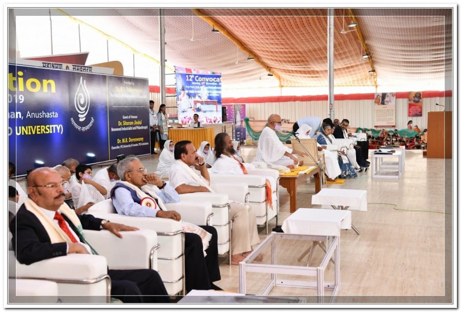 The twelfth convocation of Jain Vishva Bharathi Institute conferred degrees in the presence of his holiness Acharya Mahashraman Anushashta in Bangalore. In his speech the venerable saint said that education must enlighten us and lead to liberation. He said that education must instill the values of harmony and morality to help build a healthy society. Speaking on the occasion Dr M R Doreswamy, Chancellor, PES University congratulated the graduating students on their successful completion of the course. He said that humanism and Jainism are synonymous. He expressed the confidence that Vishva Bharathi Institute has prepared the students to become a Vishva Manava, responsible global citizens. He observed that education must provide path for living and liberation. He felt fortunate for being in the midst of living and liberation and among two great saints, one who instills the art of living His Holiness Sri RaviShankar guruji and one who instills the art of liberation, His Holiness Acharya Mahashraman). As a representative of PES University, he saw Peace, Education and Service pervading the Jain Vishva Bharathi Institute under the guidance of Acharya Mahashraman. Sri Sri Ravi Shankar Guruji, of Art of Living, in his address said that Jainism emphasizes nonviolence as a path that leads to liberation. Sri Sadananda Gowda, Hon’ble Union Minister for Chemicals and Fertilizers said that non-violence against humans as well as against all other creatures is one of the fundamental contributions of Jainism to world philosophy. JVBI, established with the inspiration of Gurudev Tulsi in Rajasthan is committed to providing the highest quality of educational services to the utmost satisfaction of the students and give them an opportunity to cultivate an integrated personality blended with spirituality and moral values.
