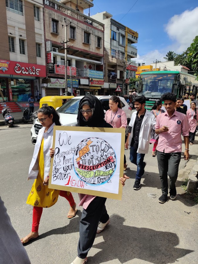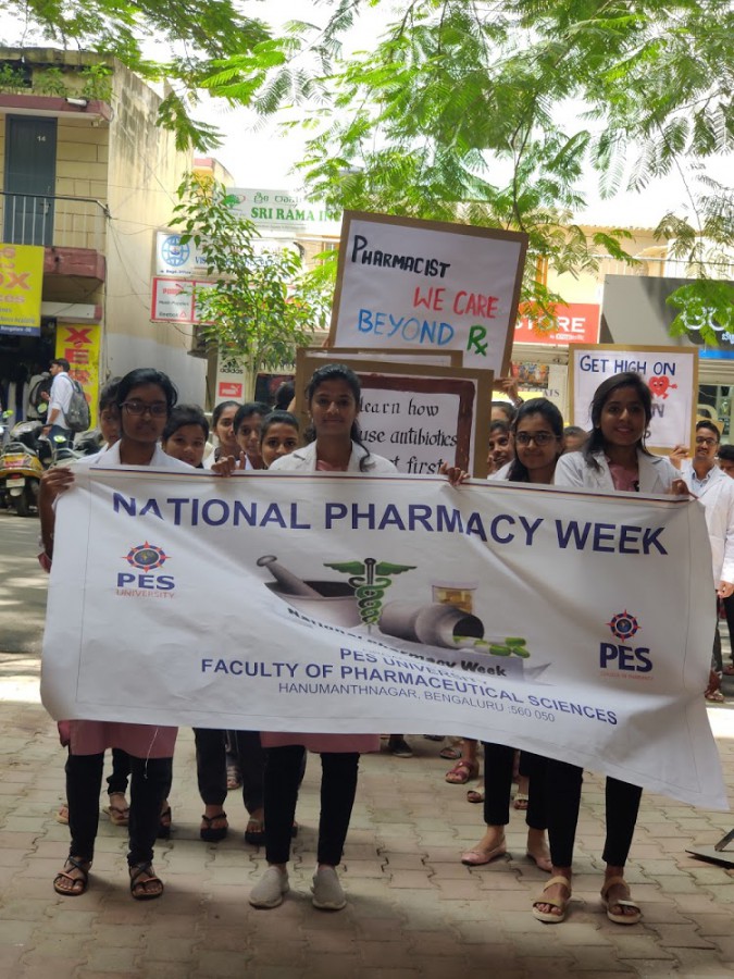 National Pharmacists Week is celebrated to highlight the pivotal role pharmacists play in the healthcare system. Students of pharmacy program undertook various activities based on the theme of pharmacists’ role in patient’s safety and efficacy of medicine. The students participated in a rally urging the citizens to avoid excess use of antibiotics and adapt a healthier lifestyle. The placards in English and Kannada carried catchy messages like: The Best and Most Efficient Pharmacy Is Within Our Own System and Get High on Life and Not Drugs, to quote a few. The event acknowledged the invaluable contributions of pharmacists in hospitals, outpatient clinics and other health care settings. The National Pharmacy Week was organised by department of pharmacy practice of PES University from Oct 21-26, 2019.