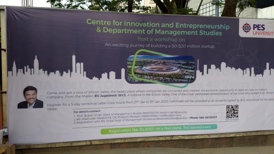 Coinciding with this, CIE in association with Dept of Management Studies is facilitating an experiential 5-day workshop for students – ‘Building from $0 to $20M Startup’ - by BV Jagadeesh (BVJ), Managing Director for KAAJ Venture and serial-entrepreneur from Silicon Valley.