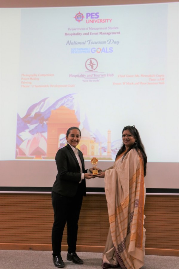 National Tourism Day is observed on 25 January to highlight the importance of tourism for the economy of the country. Speaking on the occasion, Ms. Meenakshi Gupta believed that tourism in India has amazing potential it is the responsibility of hospitality and event management professionals to build it up to generate revenue. The celebrations at PES University were dedicated towards the 17 Sustainable development goals set by the UN. Vindu 2.0 – a Travelogue was launched in the event. The poster, painting and photography competitions which saw active participation was judged by Mr. Abhishek Dev Kumar an alumnus of 2014 batch. The winners were awarded prizes. The event was held on 24th January 2020.