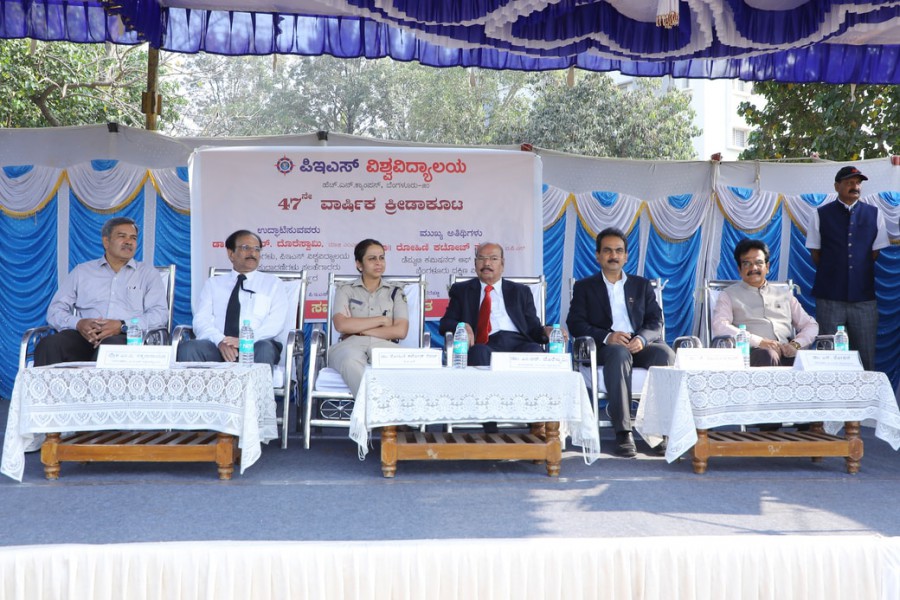 The 47th Annual Athletic Meet was held on 1st February 2020 at PES University Sports Ground, RR Campus, Bangalore. Chief guest, Dr. Rohini Katoch Sepat, Deputy Commissioner of Police, Bangalore South advised the students to take responsibility for their choices in life and also suggested that, college life being very crucial and important, has to be enjoyed thoroughly and responsibly. Dr. M.R.Doreswamy in his inaugural address spoke about the importance of sports and yoga in a student's life and stressed upon being disciplined in life. Dr.J.Suryaprasad, Vice-Chancellor, PES University, Prof.M.V. Sathyanarayana, Director, H.N. Campus, Dr. S. Mohan, Director of Pharmacy and Dr. A.V. Chandrashekar, Chairperson, Department of Commerce and Dr. C. Narayana Reddy, Principal, P.E.S College and teachers of PES University graced the occasion.