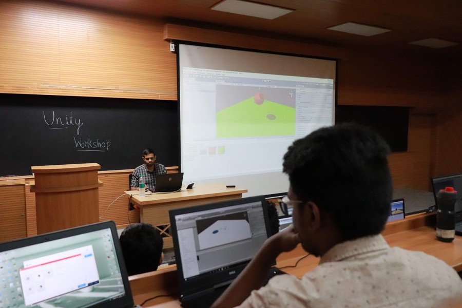The students got an opportunity to develop a game in 3D. The workshop focused on game development using Unity 3d platform. The prerequisites for the workshop were familiarity with Unity 3d and Visual Studio Code. The workshop covered all aspects from coding in C# to the exploration of Unity editor and asset stores. The Unity Workshop conducted by Sourabh Sood, Software Engineer at Moonfrog Labs on Feb 5, 2020.