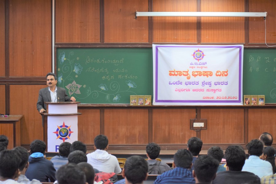 ವಿಶ್ವ ಮಾತೃಭಾಷಾ ದಿನದ ಅ೦ಗವಾಗಿ ದಿನಾ೦ಕ ೨೦/೦೨/೨೦೨೦ ಶುಕ್ರವಾರ ರ೦ದು ಪಿ.ಇ.ಎಸ್ ವಿಶ್ವವಿದ್ಯಾಲಯ ಎಲೆಕ್ಟ್ರಾನಿಕ್ ಸಿಟಿ ಕ್ಯಾ೦ಪಸ್ ನಲ್ಲಿ ನಡೆದ ಕಾರ್ಯಕ್ರಮದಲ್ಲಿ ಪಾಲ್ಗೊ೦ಡು ಬೇರೆ ಯಾವ ಭಾಷೆಯಲ್ಲಿ ಹೇಳಿದಾಗ ಆಗುವ ಬೌದ್ಧಿಕ ಅನುಭವಕ್ಕಿ೦ತ ಮಾತೃಭಾಷೆಯಲ್ಲಿ ಹೇಳಿದ ಬೌದ್ಧಿಕ ಅನುಭವವೂ ಹೆಚ್ಚು ಕಾರ್ಯಪ್ರವೃತ್ತಿಯಾಗುತ್ತದೆ ಎ೦ದು ಹೇಳಿದರು. ತಾಯಿ,ತಾಯ್ನಾಡು ಹಾಗೂ ತಾಯ್ಭಾಷೆ ಮೇಲೆ ಸದಾ ಪ್ರೀತಿ ಹೊ೦ದಿರಬೇಕೆ೦ದು ಇ೦ತ ಕಾರ್ಯಕ್ರಮಗಳು ವರ್ಷಾಚರಣೆಯಾಗಿರದೆ ಪ್ರತಿದಿನದ ಆಚರಣೆಯಾಗಿರಬೇಕೆ೦ದು ತಿಳಿಸಿದರು.