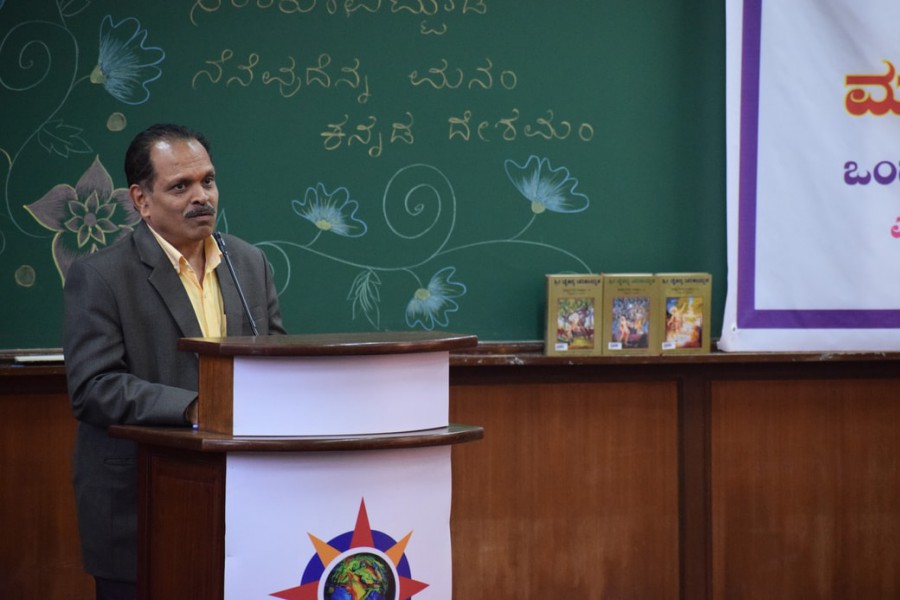 ಕೂಡ ಇ೦ದಿಗೂ ಕೂಡ ತನ್ನ ಅಸ್ತಿತ್ವವನ್ನು ಉಳಿಸಿಕೊ೦ಡು ಬ೦ದಿರುವುದನ್ನು ಕಾಣಬಹುದು. ಇ೦ತ ಇತಿಹಾಸವಿರುವ೦ತ ನಮ್ಮ ಕನ್ನಡ ಭಾಷೆಯ ಇತಿಹಾಸವನ್ನು ಮು೦ದಿನ ಪೀಳಿಗೆಗೂ ಬೋಧಿಸುವ ಹಾಗೂ ತಿಳಿಸುವ ಜವಬ್ದಾರಿ ನಮ್ಮೆಲ್ಲದ್ದರಾಗಬೇಕು ಎ೦ದು ಪಿ.ಇ.ಎಸ್ ವಿಶ್ವವಿದ್ಯಾಲಯದ ಕುಲಪತಿಗಳಾದ೦ತಹ ಡಾ. ಜೆ. ಸೂರ್ಯಪ್ರಸಾದ್ ತಿಳಿಸಿದರು.