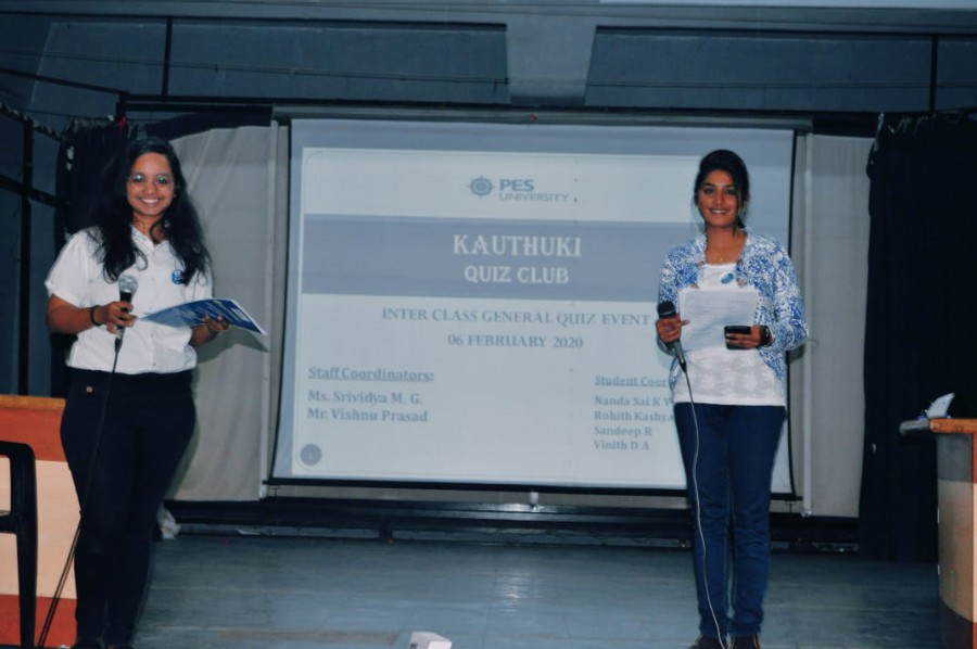 105 teams participated in the prelims and the top six teams were selected for the next round. The questions were a combination of both general and business topic which were framed with the intention of catering to the participants with different interests. The final round paved way for the winning teams: Rakshitha and Harshitha (first); Srikar and Chandan K (second) and Jayanth and Chandan (third). The quiz was held at PES HN campus on Feb 6, 2020.