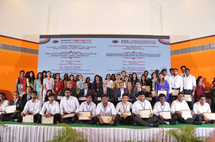 PES University nurtures academic excellence among students by identifying and rewarding meritorious students every semester. Prof CNR Rao Merit scholarship and Dr MRD Merit Scholarship for Aug-Dec 2019 semester were announced at an impressive ceremony. The meritorious students were felicitated by distinguished guests, Mr Sameer Garde, President Cisco- India and SAARC and Mr Mohan Sekhar, Senior Managing Director and Lead, Advanced Technology Centers in India, Accenture. 195 students were awarded Prof CNR Rao Scholarships of nearly Rs. 60 lakhs. 1,457 students received Dr MRD Merit Scholarships amounting to Rs. 4 crore 70 lakhs. 2713 students won distinction awards of close to Rs 27 lakhs.
