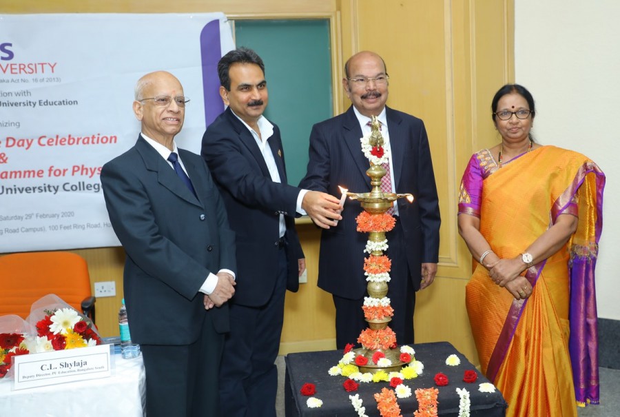 Two day faculty enrichment program got underway to celebrate National Science Day to mark the discoveries of Indian physicist, Sir C V Raman. Dr. M R Doreswamy, Chancellor, suggested the importance of faculty enrichment programs and the need to learn new things, sharing knowledge and understanding the subject. Prof. K J Rao, Emeritus Professor, SSCU, IISc, shared insights about the Raman effect and the way science works. He spoke about the clusters of galaxies and was proud of India for its contribution to the theory of black hole, and the participation of Indians in Large Hadron Collider [LHC] and LIGO. Dr. C L Shylaja, Deputy Director, PU education, addressed the gathering. The event also witnessed the presence and participation of academicians and resource persons from various institutions. Dr. J Suryaprasad, Vice Chancellor, Prof M V Sathyanarayana, Director, HN campus Dr. A V Chandrashekar , Chairperson, Department of Commerce and Management, Dr. C Narayana Reddy, Principal, PES college graced the occasion. The two day faculty enrichment program was organised by the department of physics, PES institution at PES University, in association with the department of Pre University education on 28 February, 2020.