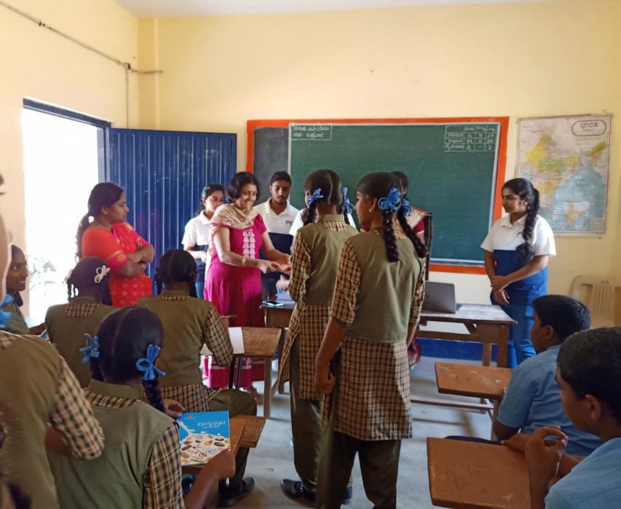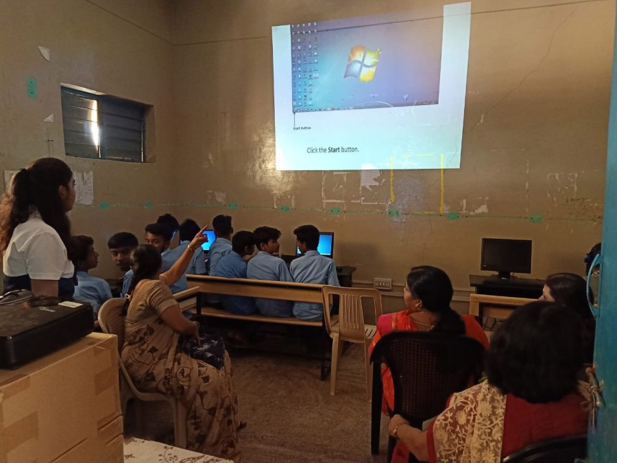 Since 2018, the department is conducting internal audit of available assets in the laboratories on regular basis. During the course of the same it was observed that 8 obsolete desktops were available but in working condition. The Chairperson, Dr. Anuradha M, proposed to identify any Government school wherein the same can be used for the beginners. The faculty of the Department Prof. Sunita M S and Prof. Hema N, identified a Government High School at Dodderi, Bangalore South District, visited the school and informed them about the proposal. The school teachers were happy and requested for suitable furniture to establish a computer lab and also a projector.