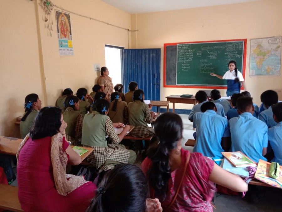 The Program was conducted on Friday 6th March 2020 which was a full-day activity comprising of General Knowledge Quiz, Basic knowledge of Computers and Hands-On training on MS Word. Prof. Sunita M. S and Prof. Hema N along with 4th and 6th Sem ECE students Monisha, Sushmitha, Archana, Deeksha, Ajay and Jeevan conducted the activities for 59 students of 8th, 9th and 10th standard students.