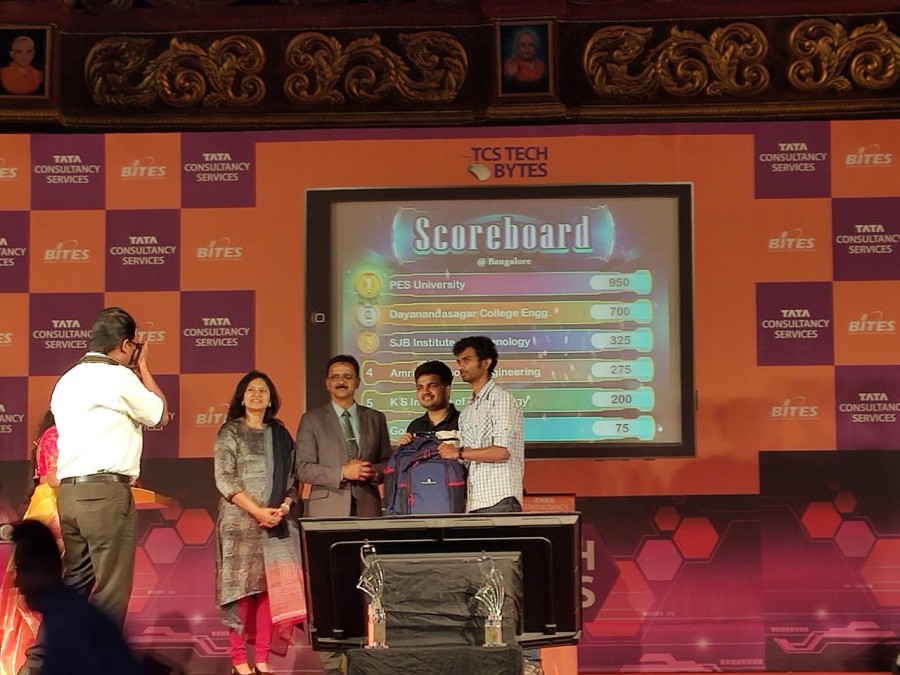PES University emerged winners at Tech Bytes Quiz for the 2nd year in a row after defeating regional winners from Mysore, Tumkur, Mangalore, Bijapur and Belagavi. Earlier, in the Bangalore round, it was 4th year in a row for the university. The winners, Preetham Upadhya and Akhil Siddharth received a cash prize of Rs.75000/- and Lenovo Tabs each. The tough quiz tested the awareness of the participants about a wide range of topics: application of technology, emerging areas, world of internet, websites, IT buzzwords and acronyms, IT Personalities, IT and communication companies, software products, brands and history of IT and areas where IT has made an impact. The Board for IT Education Standards (BITES) and Tata Consultancy Services (TCS) conduct the Engineering IT Quiz. The eleventh edition of Tech Bytes Quiz was held on 11 March, 2020 at SJBIT.