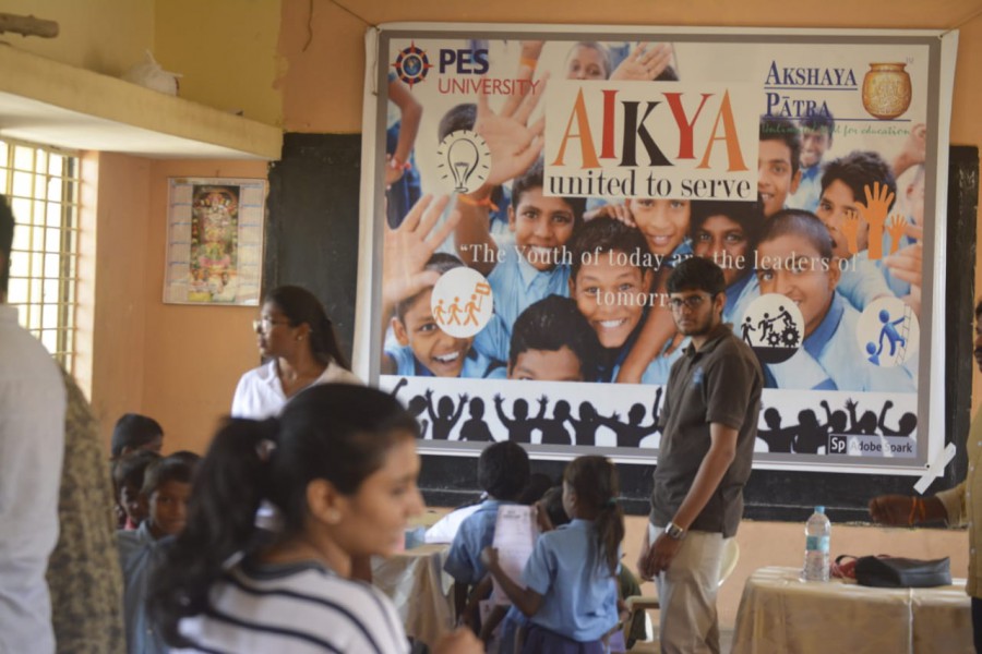 In keeping with the maxim of A healthy outside starts from a healthy inside, the AIKYA PES team organised a visit by doctors from Kuppam for a health check up for the children studying at Veerabhadra Nagar Govt School on Feb 26, 2020. The initiative helped in examining the children for health issues and letting them know the basic steps to grow up with good health and hygiene.