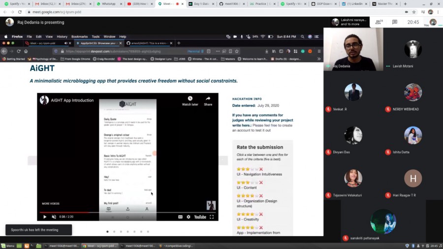 The competition saw new ways to maintain to-do lists efficiently. The participants competed to design an app for efficient and creative maintenance of to-do lists. In the design phase, participants had to build a UI/UX design for the app and were judged for navigation intuitiveness, content, organisation of design structure and creativity. In the next phase, the participants developed the application. The jury of Raj Dedania, Founder of Design and Code community, product designer and Lavish Motani, Senior Product Designer at Edelweiss Financial Services evaluated implementation of design to code, organization of components, scalability and completeness. The event was registered on Devpost. The final results were announced in the virtual meet and greet with the jury. The participants got the opportunity to know the judges views about their projects’ shortcomings and future possibilities. The overall winner was Team Presta of Tejaswini V Balaji, Gana VI L, Tushar Sethi; the design phase winner winners were Ishita Datta, Nidhi Raniyer, Shloka Lakka and development phase winners were Arnav Dewan, Kulachi Thapar, Namith Telkar. The event was held online over a week, from July 25 to Aug 2, 2020.