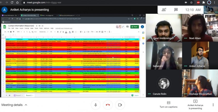 The auditions for the music club of PESU ECC selected the members of bands in three different genres, The Clefhangers, in Acapella, Shaken not Stirred in Western music, and Swantantraka in Indian classical. The auditions held on Zoom on Jan 29, 2012 selected fourteen talented musicians for the three bands.