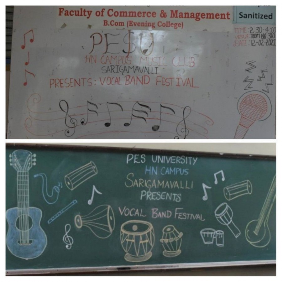 Talented singers and musicians among the students of PES HN campus performed at their best at Vocal Band. Dhanyashree and Sushravya emerged as the winners at the event organised by Sarigamavalli Club of the university on Feb 12, 2021.