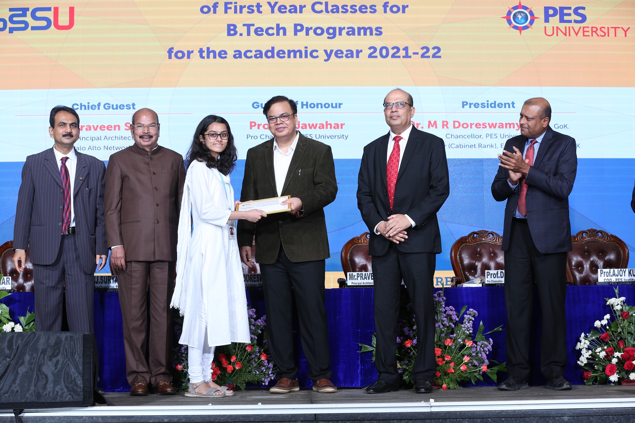 Dr. J. Suryaprasad, Vice-Chancellor welcomed the dignitaries and audiences. The dignitaries distributed the Prof. CNR Rao and Prof. MRD Merit scholarships to the awardees. Dr. K.S. Sridhar, Registrar of PES University rendered the vote of thanks. Prof. D. Jawahar, Pro-Chancellor of PES University, and Prof. Ajoy Kumar, COO of PES University were present on the occasion.