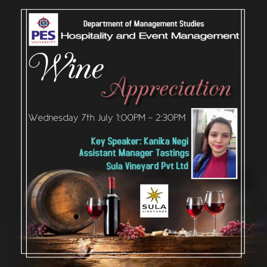 Students got an opportunity to understand the nuances of grape growing, manufacturing wine and building of the brand Sula. Ms. Kanika of Sula Vineyards walked the students through the informative session organized by the faculty of BBA HEM program on July 7, 2021.