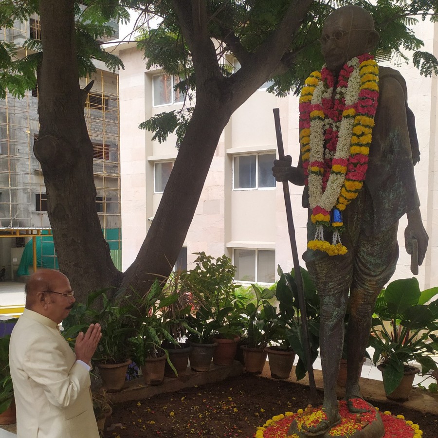 Mahatma Gandhi is an apostle of “Satya and ahimsa”. They were two socio-political weapons he used in achieving his goals. His Principles, ideals and teachings still have universal relevance said Dr. M R Doreswamy while addressing more than 30,000 PESUians online in his address on “Gandhi Jayanthi”. He appealed to all PESUians to take the lead in imbibing the principles and values of Gandhi in personal, social and professional life. The name of Mahatma Gandhi ji transcends the bounds of race, religion and nations and has emerged as the prophetic voice of the 21st century. The world remembers Gandhi not just for his passionate adherence to the practice of truth and non-violence, but as the benchmark against which we test ourselves and fellow beings in personal, social and professional life.