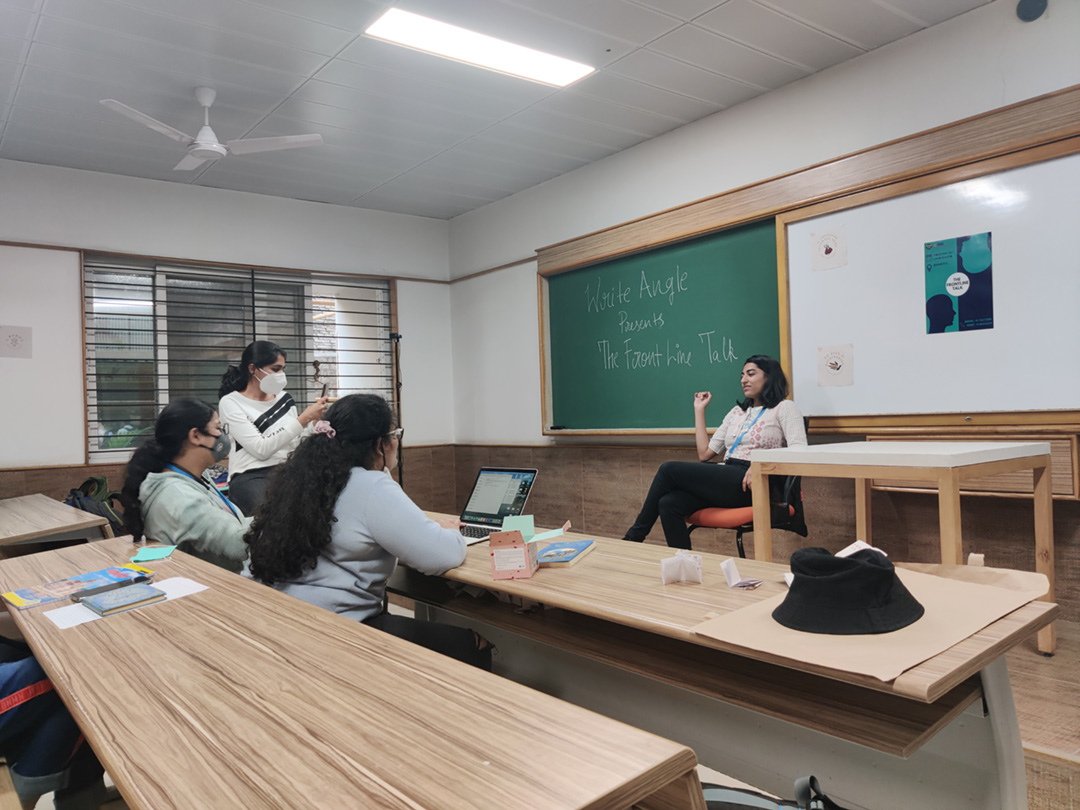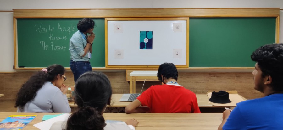 Participants took two minutes to prepare for impersonating a well-known character and faced a barrage of questions by the audience, answering as the character over the next three minutes. Fascinating and unexpected replies made the event enthralling. Aishwarya Ramkrishnan bagged the first place with her spot-on impression of Albus Dumbledore from Harry Potter. Rohan RP and Sai Darshan impersonated Sherlock Holmes and Daisy Buchanan from The Great Gatsby to win the second and third place. The Literary Club of PES, Write Angle, hosted the event The Frontline Talk on October 22, 2021.