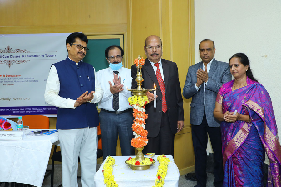 The inaugural event for First Semester Classes of M.Com Program was organized by the Faculty of Commerce and Management Studies on 8th November 2021 at PES University-Ring Road Campus.
