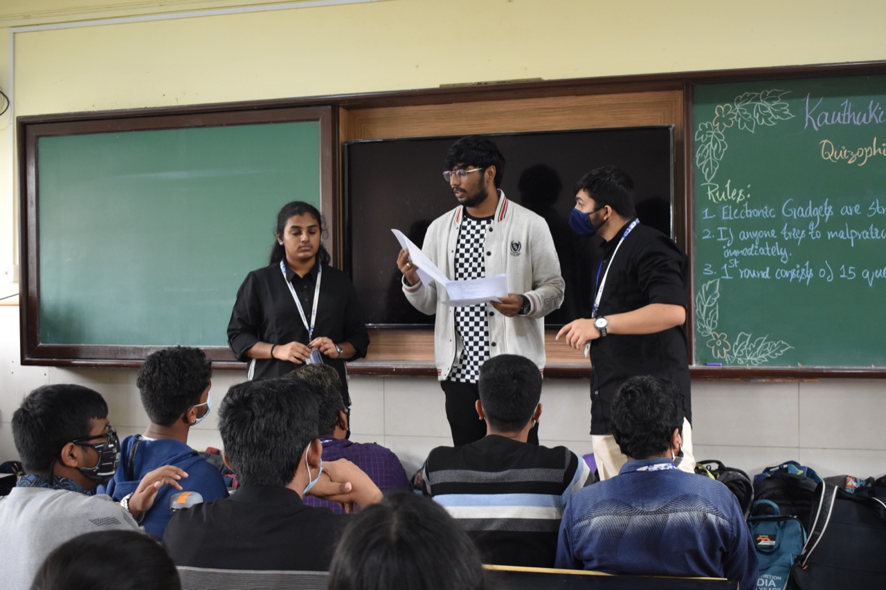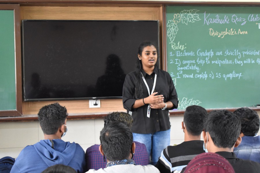 Vihith and Srinidhi were declared winners and Rakesh Sarode and Sushmitha G were runners-up followed by Narendar Kumar and Harshith Sharma in the Quizophile’s Arena quiz contest organized by Kauthuki club of HN campus on November 13, 2021.