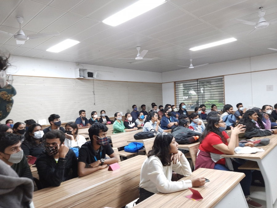 The contest tested the literary knowledge and reading habits of participants. In the first round called Book plots badly explained, participants guessed the name of the book based on a garbled explanation of its plot. Call my bluff round was about guessing the correct word from the definition. In the Charades round a team member was given a book title to enact in thirty seconds and the other members guessed the title. In the Pictionary round a team member was given the title of a book to draw for their teammates to guess the same in thirty seconds. First position was clinched by Vaishnav, Srinidhi BS and Shivani S. The second position was bagged by Prajna R, Pratyusha Rao and Nihaal Kuchangi and third position was won by Chetana Mital, Meghna Prakash and Pranav Srikar. Wordpourri 2021 was conducted by the Write Angle club of RR campus on November, 12, 2021.