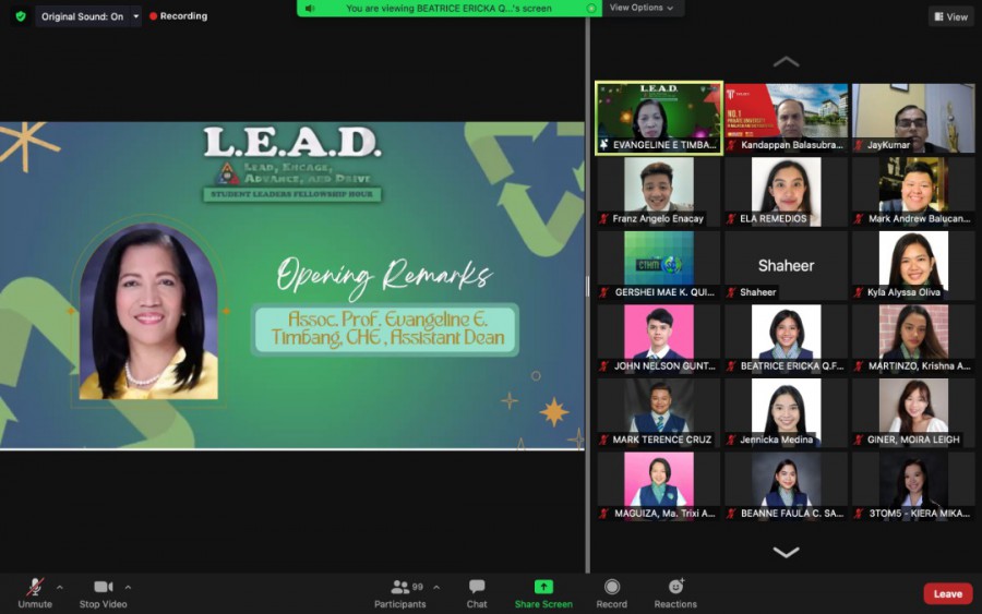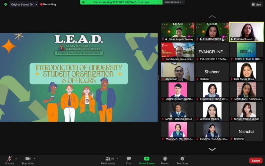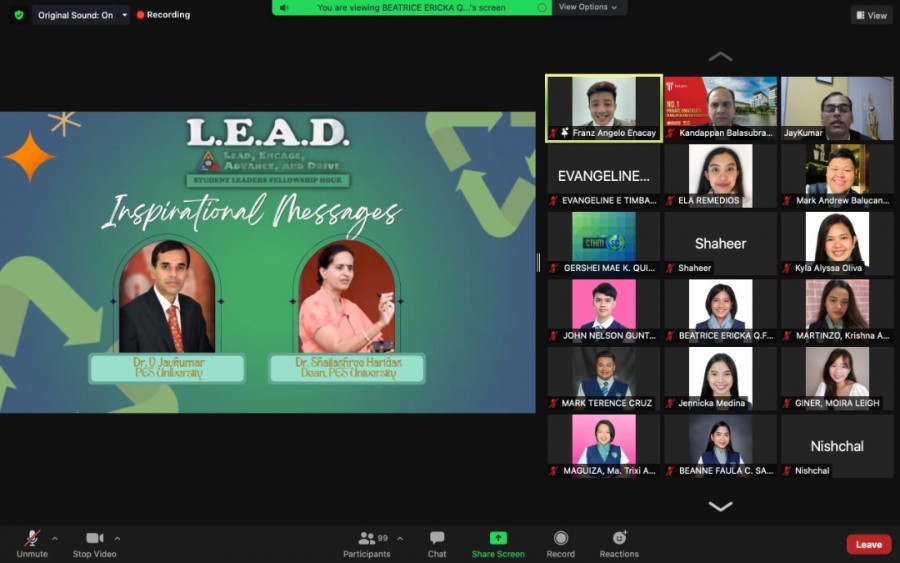 Lead, Engage, Advance, and Drive student enrichment activity demonstrated the importance of the value of cultural exchange, towards achieving peace and unity among participants. Evangeline E. Timbang, CHE , Assistant Dean-University of Santo Tomas-Philippines and Prof.Kandappan- Associate Professor-Taylor’s University,Malaysia addressed the gathering and shared their insights about promoting global leadership, collaboration and cooperation. The first inter-university students extension activity in South East Asia attended by students PES University, Taylor’s University, Malaysia and University of Santo Tomas, Philippines was hosted on Zoom platform on Nov 27, 2021.