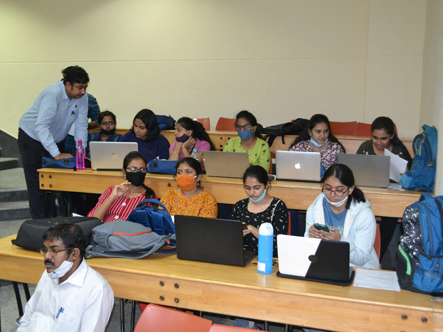 The Bootstrap session featured interactions on technical, social responsibility and personality development topics. Dr. Keshavan B K, Dean Engineering, Guest of Honour gave the welcome speech and advised the students to work on inter-disciplinary projects. Dr. K S Sridhar, Registrar, PESU and Dean, Placements presided over the function. He advised the students to consider their inception as a countdown and not the beginning of making a great career. Dr. Veena S, Chairperson, Dept. of Computer Applications, briefed about the 3-day Bootstrap activity. Prof. CNR Rao Scholarships and Prof. MRD Scholarships were awarded to the program toppers of the MCA 2020. Mr. Manish Singh, Founder and CEO, Innovators Bay Technologies, alumnus of PES and chief guest of the event spoke about the technology trends and how the curriculum would help the freshers in making a better career. He also stressed upon innovation and at the same time, pursuing one’s hobbies. The event was followed by bridge course on computer fundamentals conducted by Mr. Santosh Katti, Asst. Prof., Dept. of Computer Applications which covered simple logic building skills, Algorithms and Flowcharts. It was followed by session on Academic Excellence – Motivation to Success, by a professional trainer Mr. Pramod Nataraj, from Disha, a NGO that provides training to students and faculty. He illustrated experimenting with truth. The sessions included Time Management, Stress Management, physical activities and interactions leading to academic excellence and motivational thoughts. The second day of the Bootstrap event included a bridge-course on Data- Structures using C, by Dr. Lekha, Assoc. Prof., Dept. of Computer Applications. It was followed by a visit to an Ashram, Sawan Durbar, off Uttarahalli-Kengeri Road, Bengaluru. The inmates of the Ashram conducted a session on Values of life and demonstrated the concept of service. A group of students were made to till the land for harvesting the rain water and plantation. Another group of students assisted construction of the road using mud and jelly stones. Another group of students cemented the water leakages in the water passages. The students were introduced to honey bee cultivation and the honey extraction process. A workshop on building and hosting online resume was conducted by senior students Mr. Atishay Jain, Ms. Soundarya J and Mr. Tushar Ankit. The students were introduced to web hosting technologies and WordPress. The third day of the Bootstrap activity started with bridge-courses on Data Structures using C, conducted by Dr. Lekha and Introduction to Operating Systems”, by Dr. Thenmozhi, Assoc. Prof., Dept. of Computer Applications. The motivational session Mr. Veerendra R. Sachin, a Corporate Trainer Beyond all limits touched upon preparation for placements and confidence building. He also spoke about ethics during interviews, Team and Time Management and Dreaming big. In conclusion he said, “thinking out of the box and hard work, can make anyone an entrepreneur”. Students, Mr. Siddharth and Ms. Suhruta conducted an IT- Quiz on Kahoot platform. Mr. Parikshit and Mr.Pallav conducted a workshop on Computer Hardware assembly and laptop upgrading challenges. The Department of Computer Applications organised the Bootstrap program for the fresh batch of students of MCA program on November 25, 2021.
