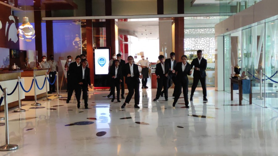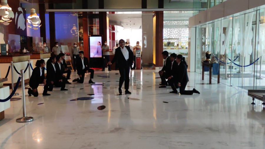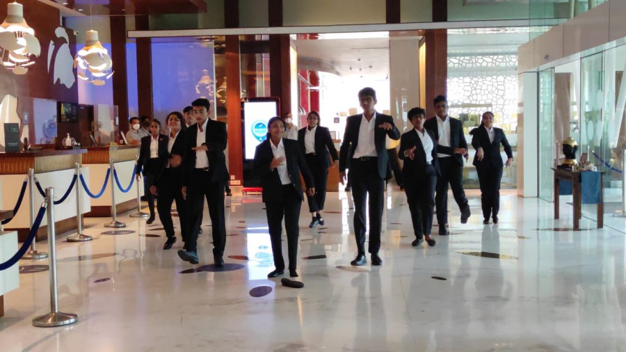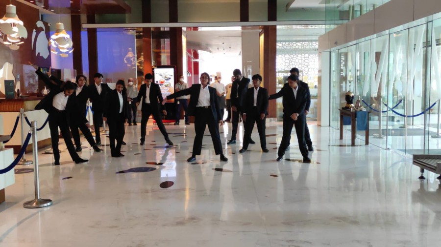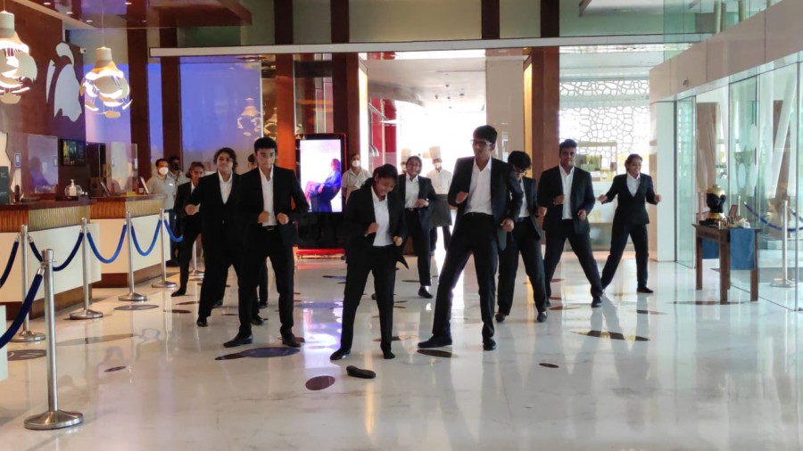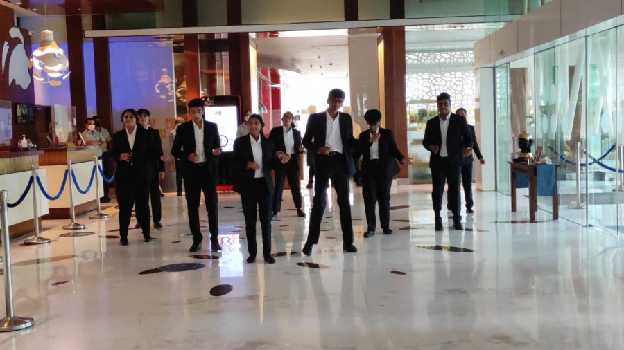 As part of practical learning in event management students were given an opportunity to assist the HR team of a leading hotel in organizing a flash mob. They performed to the hotel’s anthem and cinema songs to entertain the guests and motivate the staff of the hotel. Students of first semester of BBA-HEM assisted the HR team at Novotel in managing the Accor HR gratitude week celebration on October 13, 2021.
