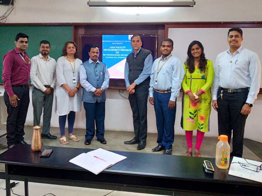 The faculty development program focused on ways to improve and enhance academic rigor of the courses. The program covered industry trends, updating course plans and learning outcomes, orientation to new curriculum and knowing about the new assessment tools and techniques. Dr.Naveen, principal of Jain College outlined the scope and opportunities of NEP curriculum. Dr. Balu, Associate Dean of Management Studies at Presidency University talked about the course plan design and delivery tools. Dr. Vinayak, Associate Professor at CMS and NAAC Coordinator gave an overview of adaptive and adult learning concepts covering Bloom’s Taxonomy and learning styles. Dr.Shailashree H, Dean of Department of Management Studies and Advisor to department of Law, PES University highlighted the importance of contemporary assessment and evaluation techniques. The session was followed by interaction with the management team of Novotel hotel to discuss the best practices and changes in industry and presenting the program structure adapted by the department. The faculty development program was conducted by the department of BBA HEM from January 4-8, 2022 at the RR campus.