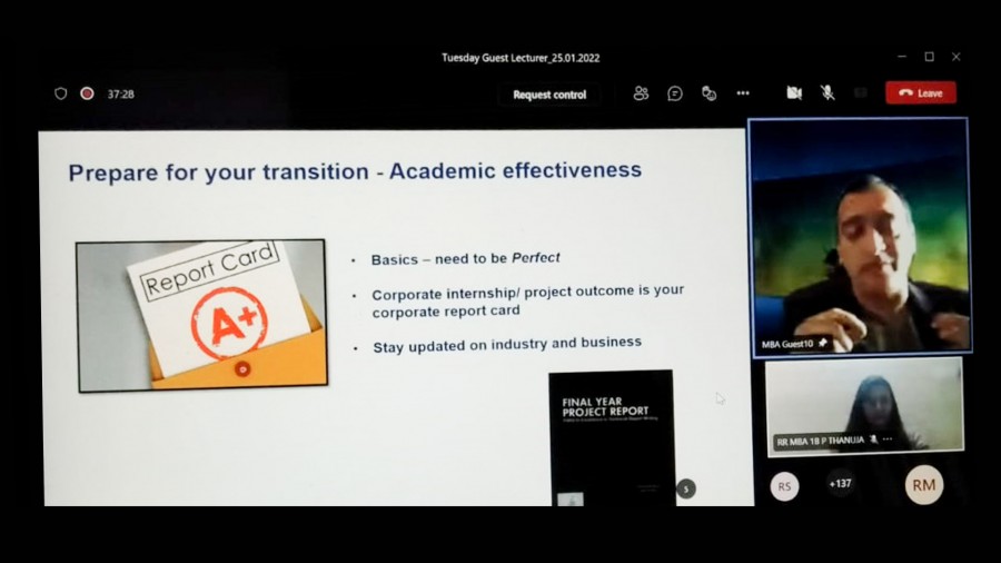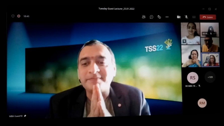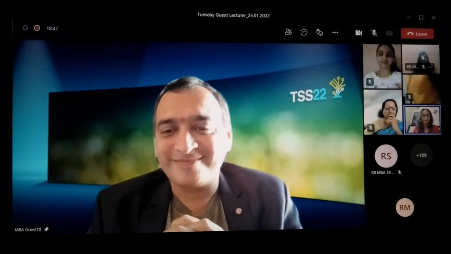 It is the need of the hour to be adaptive during this crucial time for the community, industry and business. The guest speaker Saurabh Shah elaborated “Imagine you are the owner of the bank and 86400/- is deposited in your account everyday only for 24 hours. What will you do with it? A wise person would invest on business, shares and on anything that gives back profit as returns. 86400 are seconds of a day. Therefore, every single day we should use it to improve our present status. Where we are today and where we will be soon are the most important matters for one who wants their career to be in a good place. Where we are today on social media, exams, many goals, and parties. Where we will be soon- success, career, earnings, wanting more! Shifting from where we are today to where we will be soon is called Paradigm shift. SWOT analysis plays a major role in one’s self development. The last thing the fish knows about is water. What are we great at? Have you self- validated your thoughts? Do you have a role model in your mind? We must keep questioning this to ourselves from time to time. It is extremely important to have a role model to achieve your current goal. Academic effectiveness: What next? Is it basic? Yes, Basics need to be perfect in the practical world. It is important to relate basic concepts with application. Stay updated on the industry and business. Luckily PES University trains students by solving case studies and research papers based on real time instances of Industries or companies. Concentrating on a final year project is very important as it shows our ability to the firm that is going to recruit you. Communication is everyone's way to build your career. To improve your communication skills, be proactive in career-based activities, understand your communication style and work on it, reach out to people by asking questions and communicate your progress, build your contacts from day 1 and it’s called networking. To have a successful corporate life only you can own and drive your career. Organization provides vision and environment and manager points towards opportunities. Your growth is the breadth and depth of your skills.” Saurabh Shah is Head of Human Resources at Capita, a digital services and software business, delivering innovative solutions. Saurabh is a talent management and acquisition strategist in the technology space, specializing in organizational development, strategic human resource management, campus recruitment, employee engagement and HR process re-engineering. The guest lecture was held online on Jan 25, 2022.