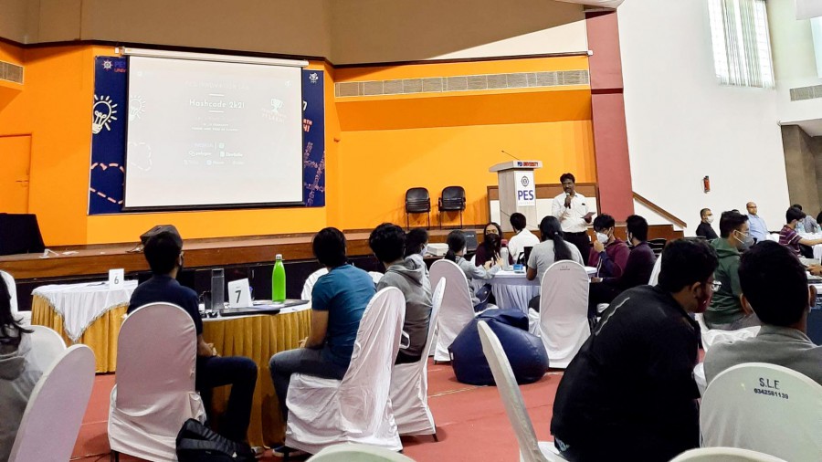 Ideas based on Responsible AI, Augmented Reality, Blockchain, and Robotics were pitched by contestants in the 24 hour hackathon. The ideas implemented by teams ranged from the development of a supply chain inventory management system and Docker python builds, to applications aimed at enhancing virtual learning and overcoming lockdown habits. Eminent jury members drawn from industry and academia including Mr. Clifton Fernandes from Nokia, Mr. Nagaraj Rajagopalan from Nokia, Mr. Balasekar from HCL, and Dr Vamsi and Dr Kaustav Bhowmick from PESU evaluated the teams and zeroed in on the top ideas. PES Innovation Lab conducted HashCode 2021 on February 12, 2022.