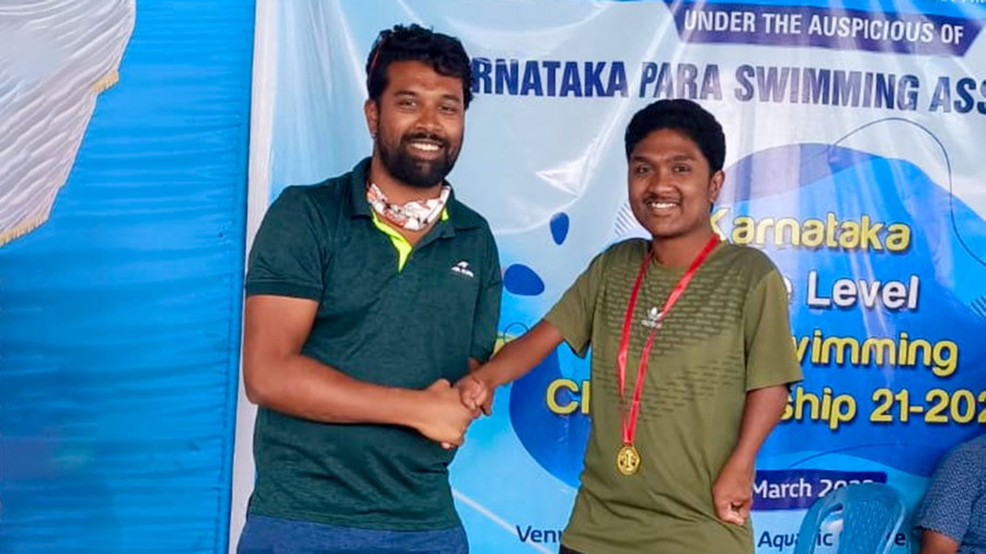 Naveen Venkatesh won three gold medals, in 100 m Butterfly, 100 m Breaststroke and 50 m freestyle events at Karnataka State Level Para Swimming Championship held at Basavanagudi Aquatic Centre on March 6, 2022.
