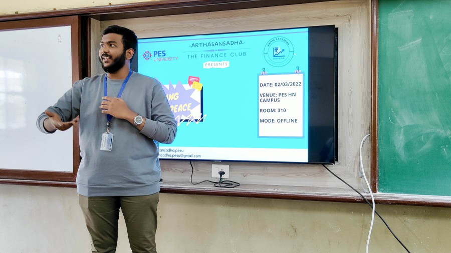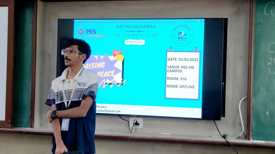 Participants presented blueprint of a start-up in a particular sector and vied for top slot. Ajay Prasad emerged as winner followed by Vishnu and Rahul G at the contest called Rising Peace that was organized by Arthasansadha-The Finance club of HN campus on March 2, 2022.
