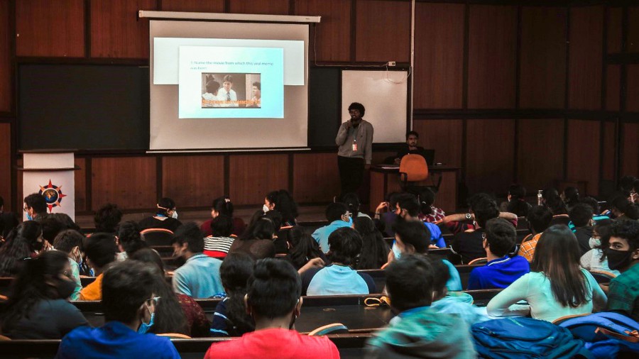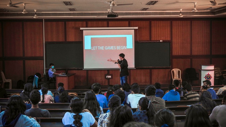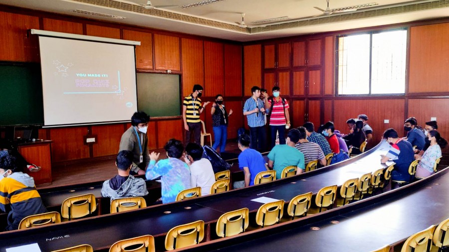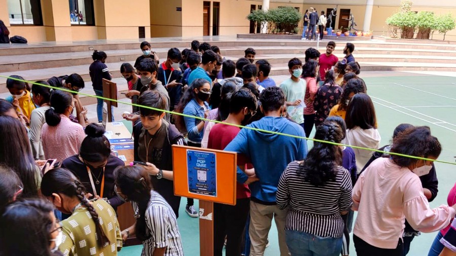 Pop Quiz tested students’ knowledge of the latest trends in pop culture. The quiz was preceded by a marketing blitz that featured a promotional stall hosting a logo quiz during breaks, a vibrant Instagram page, and teasing WhatsApp messages. The finals are open to viewing by cheering groups comprising 10 questions for the Pounce and Bounce round and a written test. First Place winners: Mihir Jayaprakash, Hradyansh Chauhan, Lenver Pinto; second place winners: Rithvik Wuyyuru, Nishanth Patri, Nithanth Sawkar; and third place winners: Rithvik Jayaram, Advaith Shet, Aditya Lawankar. Pop Quiz, the debut event of the Quotient Quiz Club of EC Campus was hosted on March 11 and 14, 2022.