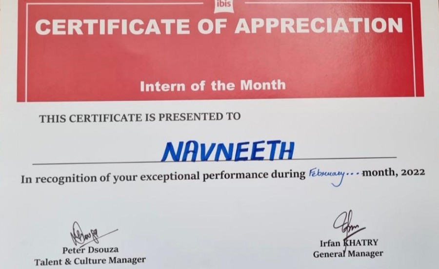 Student achievement: Navneeth Mr. Navneeth, student of second year BBA HEM was recognized as the best trainee by Ibis Hotel Bangalore, part of French Accor group. March 31, 2022 Viewed - 2897 Liked - 3