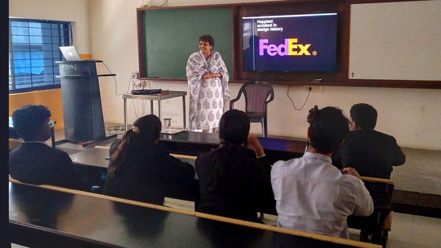 Prof.Chitra Vishwanathan, Director, Department of Design delivered a lecture on Being Stupid in Design Sense to highlight the element of design in the hospitality and event industry. She demonstrated how simple and irrelevant ideas can be converted into impactful design elements. The guest lecture was organized by the BBA HEM department on April 28, 2022.