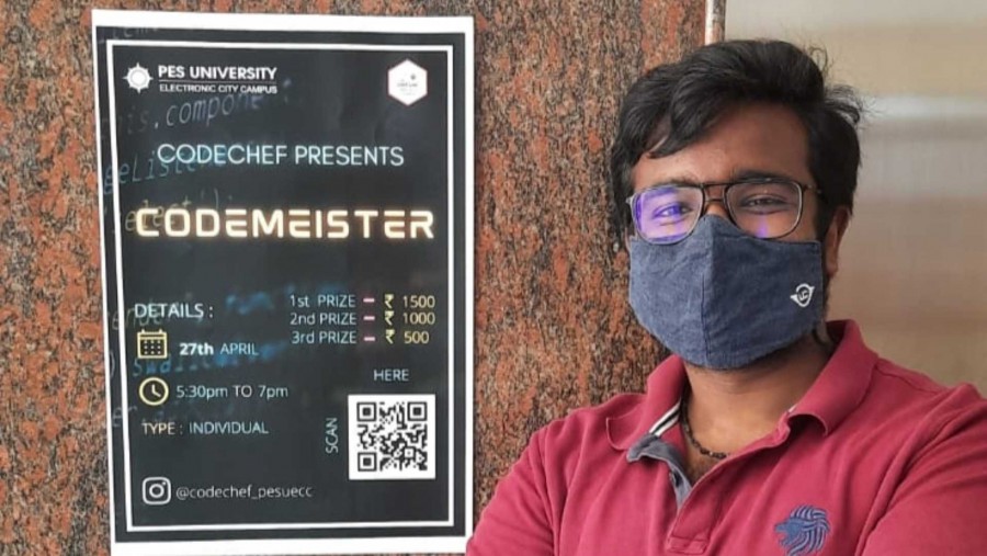 Codemeister coding competition tested the logical abilities and algorithm design fundamentals. The contest was preceded by an awareness session to help students learn how to face technical rounds of interviews in placements. A brief description of the functioning of the platform of Codechef, and a general introduction about competitive coding platforms like Leetcode, Hackerrank, Hackerearth prepared the students to take on the coding challenge. Aryan V S bagged the first prize followed by Bharath Kumar S P and Sohan Naidu. Codemeister was organised by Codechef PESU ECC chapter on April 27, 2022.