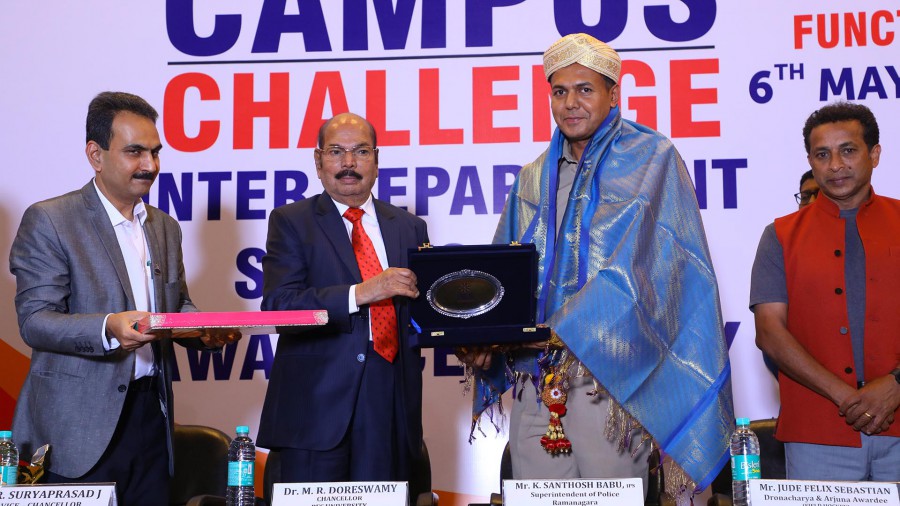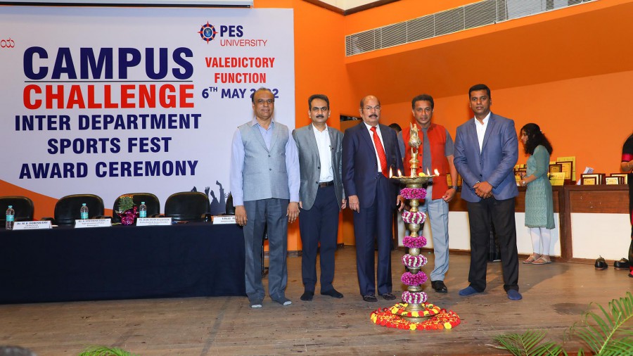 PES University’s Department of Physical Education and Sports management held the Awards Ceremony for the Campus Challenge Organized in the Campus during April 30, 2022 to May 06, 2022. A total of 8 games were held with 17 students bagging Medals and Certificates for their performances at the National and International levels.
