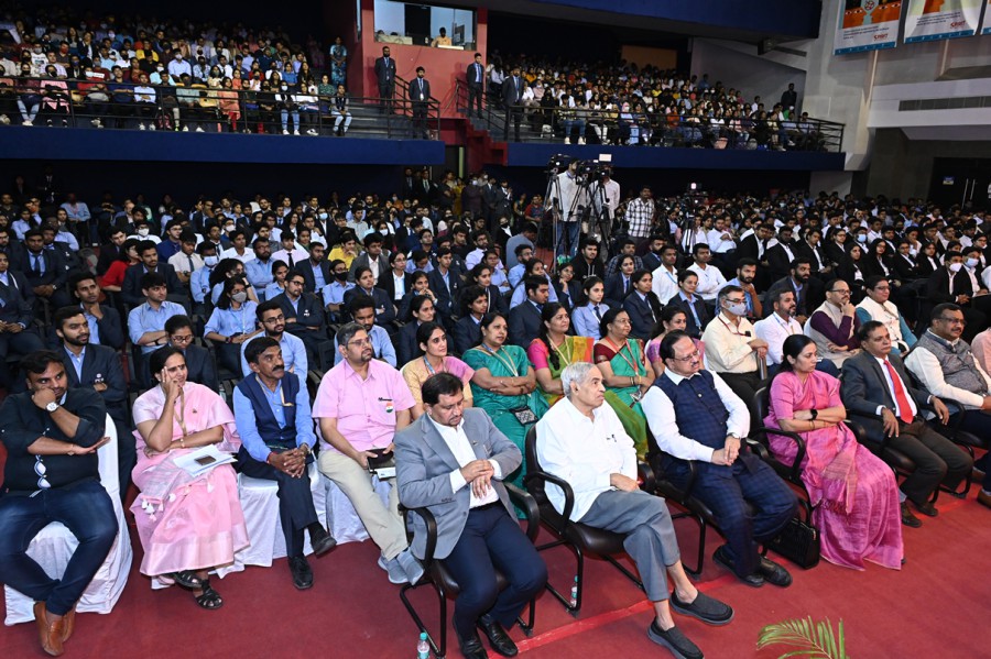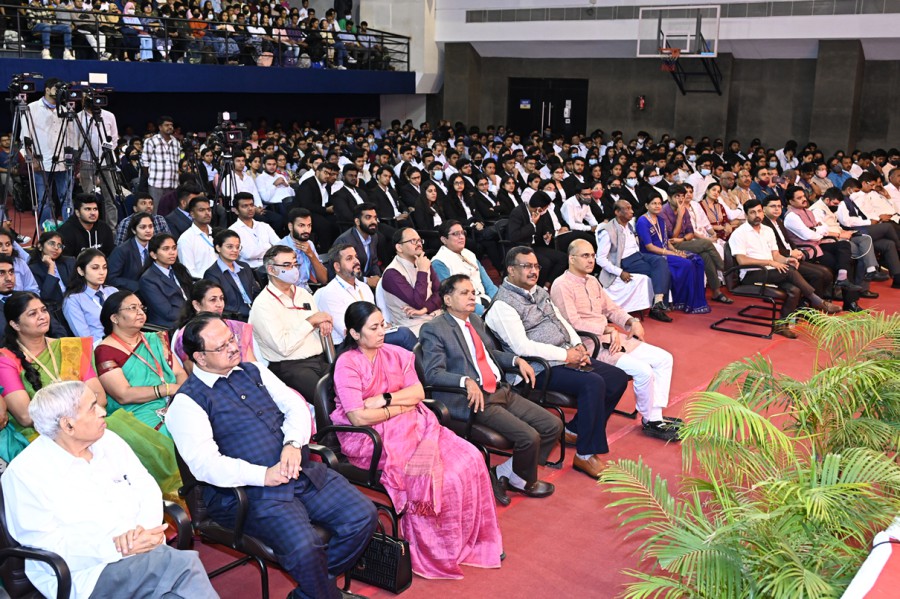 In his presidential address, the Chancellor of the University and Advisor on educational reforms, Government of Karnataka, Dr. M.R. Doreswamy expressed pleasure on the presence the EAM Dr. Jaishankar in the University. Dr. Doreswamy appreciated Honorable Prime Minister Sri Modi for selecting Dr. Jaishankar to be the External Affairs Minister and said that India is today on top of the world map.