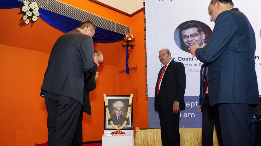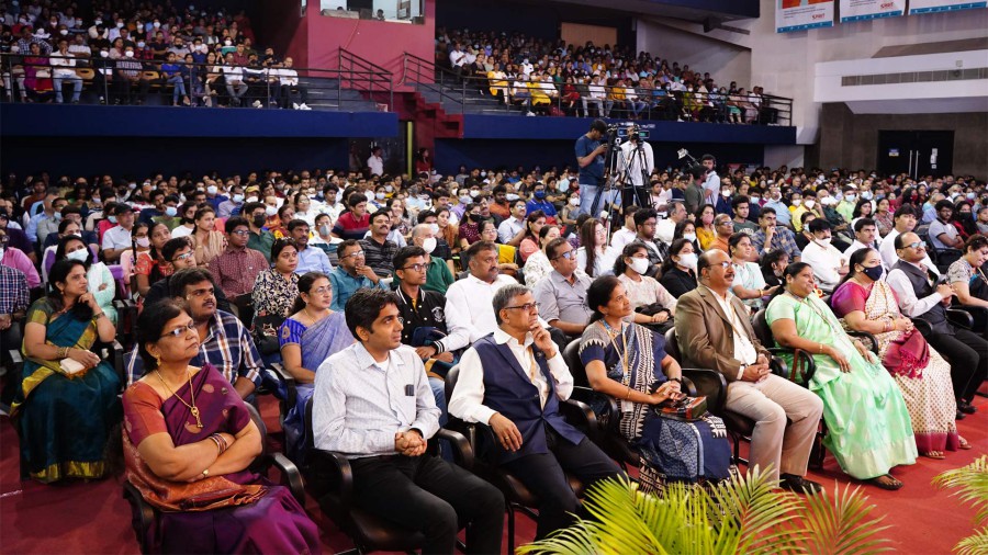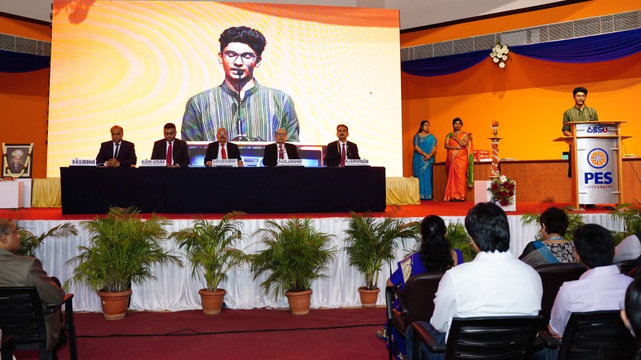 In his presidential address, Dr. M.R. Doreswamy, Chancellor of PES University said that education at PES University inculcates in students a sense of nation-building activity apart from awarding degrees. He informed the gathering that the University has distributed merit scholarships to students to the tune of Rs. 40 Crores as since its inception in 2014. PES has kept up its commitment to providing quality and value-based education. He advised students to have Sir M Visvesvaraya and Dr. Abdul Kalam as role models in their lives. He also mentioned that PES University has included Sir M Visvesvaraya's biography as a topic of study for all students. He advised students to develop the habit of reading books and making books with their friends. He said that success depends on not only securing good grades but also inculcating values in oneself. He advised students to adopt the practice of giving back to society and insisted on following the principles of "care and share" in their life. He acknowledged the role of teachers in the life of a student and that they must salute the teachers and parents for what they are today.